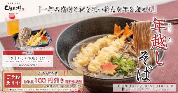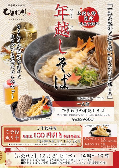 【玉子焼・お出汁ひまわり】11/28~「年越しそば予約受付開始!