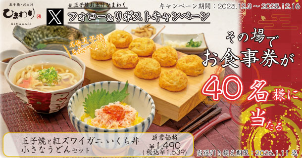 玉子焼・お出汁ひまわり公式Xアカウントをフォロー&リポストで簡単応募でき、その場で40名様にプレゼント!