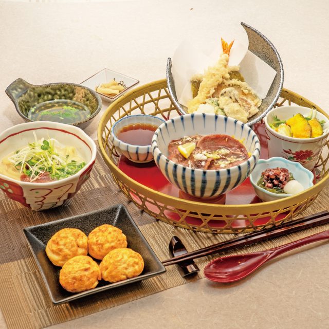 - ネギ塩牛タン丼と季節の天ぷら御膳 1,790円(税込み1,969円)