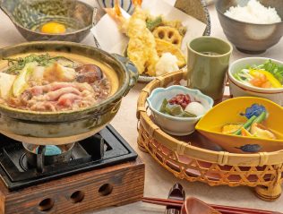 牛すき鍋と季節天ぷらのかご盛り御膳